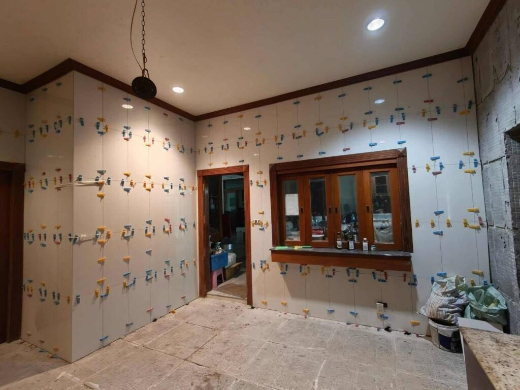 ช่างจะเริ่มกำหนดแนวกระเบื้องโดยใช้เชือกหรือเครื่องมือช่วย เพื่อให้การวางกระเบื้องเป็นเส้นตรงและสวยงาม การติดตั้งจะทำทีละแผ่นโดยใช้ตัวหนีบหรือตัวเว้นร่องเพื่อให้ได้ระยะที่เท่ากัน - การเก็บงานและยาแนว